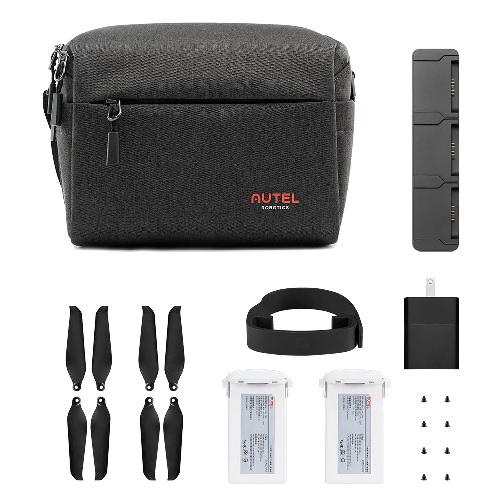 The Autel EVO Nano On the Go Bundle is an accessory bundle that includes many essentials for the EVO Nano series including batteries, propellers, propeller holder, a battery charging hub, Multi-Charger and shoulder bag.